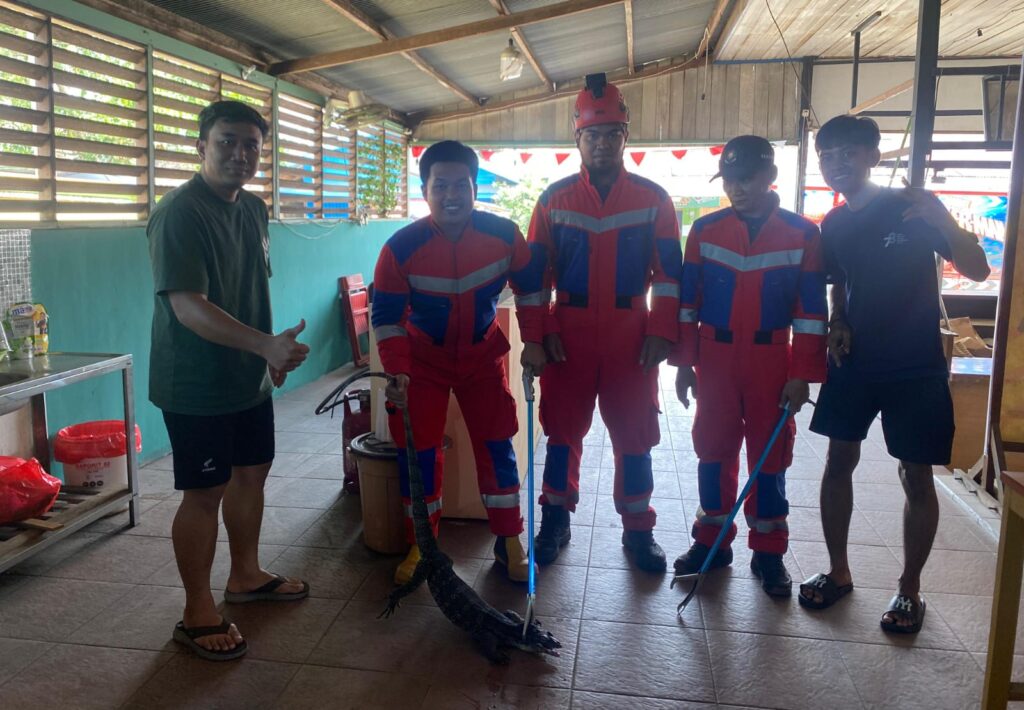 ayobaca.co, Tenggarong – Tidak hanya menghadapi kebakaran, Dinas Pemadam Kebakaran dan Penyelamatan (Damkarmatan) Kabupaten Kutai Kartanegara (Kukar) juga siap membantu masyarakat menghadapi berbagai situasi darurat sehari-hari. Contohnya terlihat pada Senin (22/09/2025), ketika tim Damkarmatan Kukar mengevakuasi seekor biawak yang masuk ke dalam rumah warga di Jalan Panjaitan.